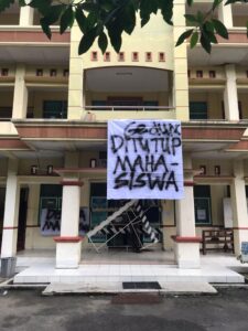 Selain itu juga, para anggota Senat memasang dua banner, masing-masing bertuliskan ‘Gedung Ditutup Mahasiswa’ dan ‘Disita Mahasiswa’.