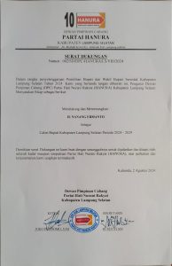 Meski tak memiliki kewenangan untuk mengusung pasangan calon, namun raihan suara Partai Hanura yang mencapai sekian suara merupakan bentuk dukungan rill partai Hanura untuk memenangkan Nanang Ermanto sebagai Bupati Lampung Selatan periode 2025-2030.